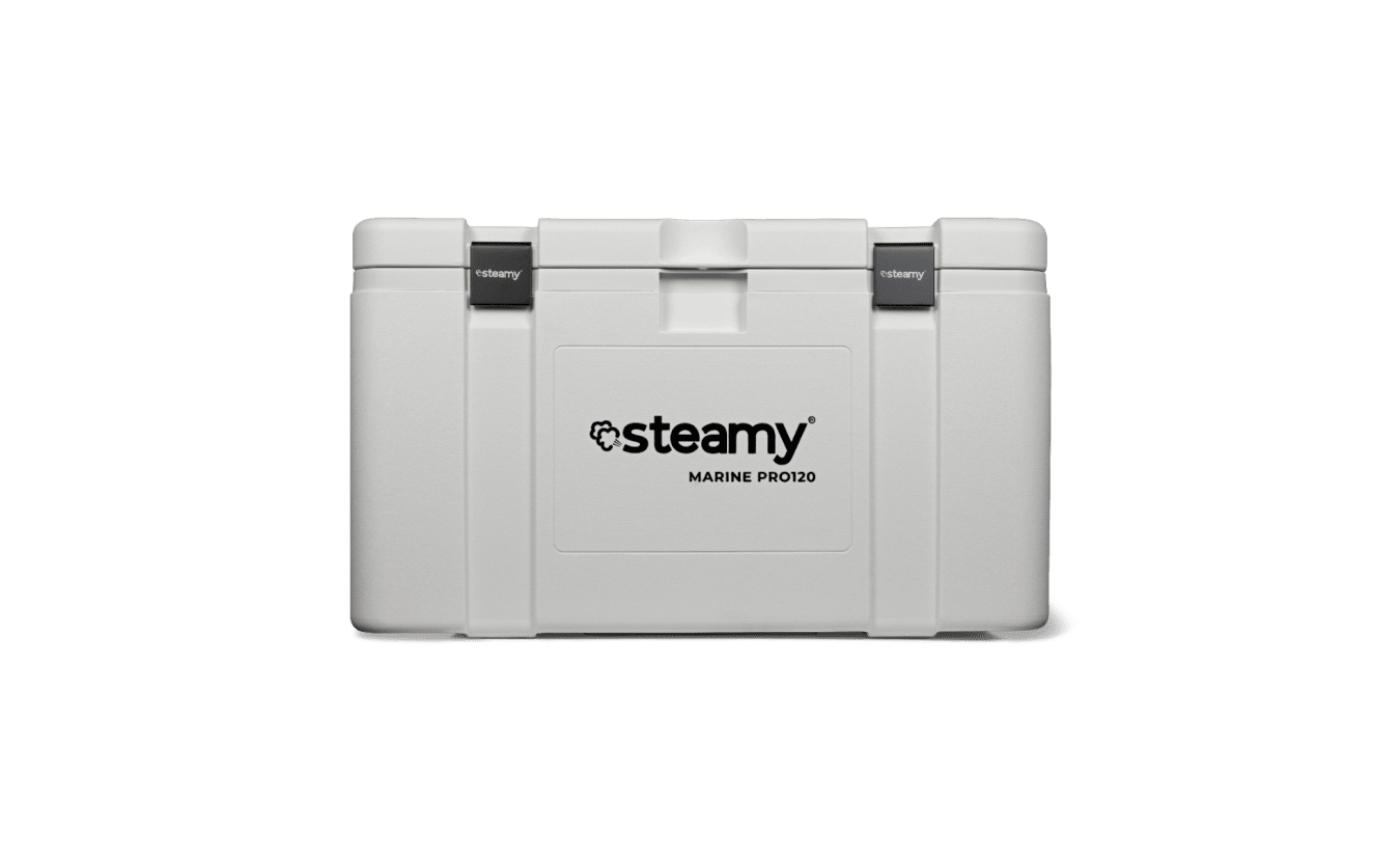 Die Steamy Marine Pro 120 ist mit Befestigungspunkten ausgestattet, die es Ihnen ermöglichen, die Kühlbox zu sichern, damit sie auch auf bewegter See an ihrem Platz bleibt. Die Edelstahlverschlüsse und -griffe sorgen nicht nur für Langlebigkeit, sondern auch für eine dichte Abdichtung, um den Inhalt vor den Elementen zu schützen. Dank der robusten Griffe lässt sich die Kühlbox auch bei voller Beladung mühelos tragen.