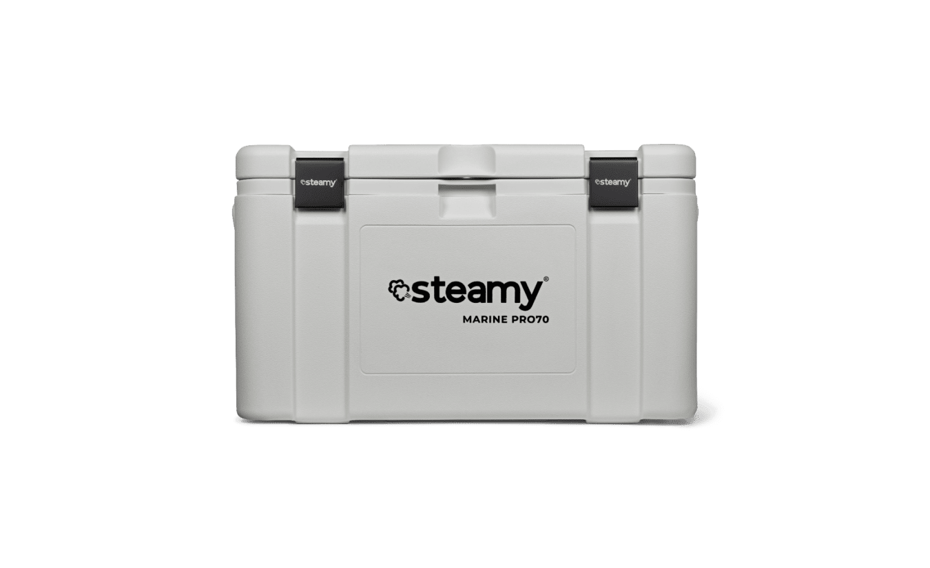 Die Steamy Marine Pro 70 hat ein Fassungsvermögen von 70 Litern, mehr als genug Platz für all Ihre Aktivitäten. Mit seinem riesigen Fassungsvermögen bietet er Platz für all Ihre Getränke, Snacks und mehr, während die hochwertige Isolierung dafür sorgt, dass alles bei der richtigen Temperatur bleibt.